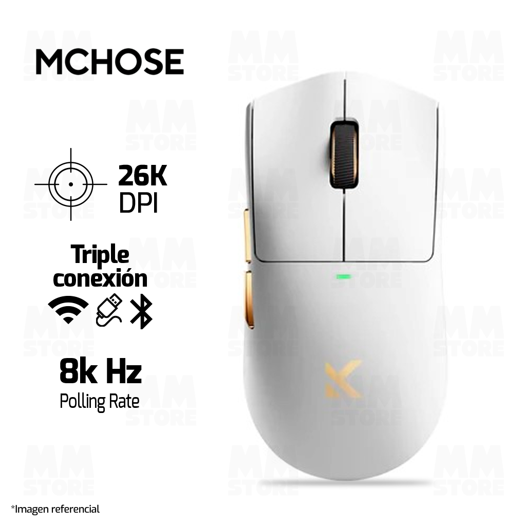 MOUSE MCHOSE K7 ULTRA | BASE DE CARGA | INALAMBRICO | 8000 Hz | BLANCO-DORADO