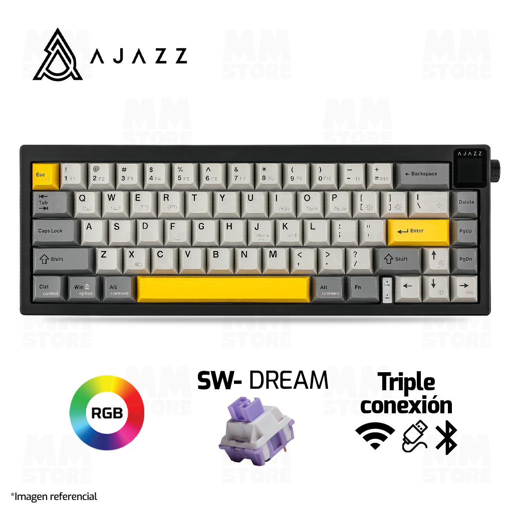 TECLADO AJAZZ AK650 | INALAMBRICO | RGB | SW-DREAM| NEGRO-GRIS-AMARILLO