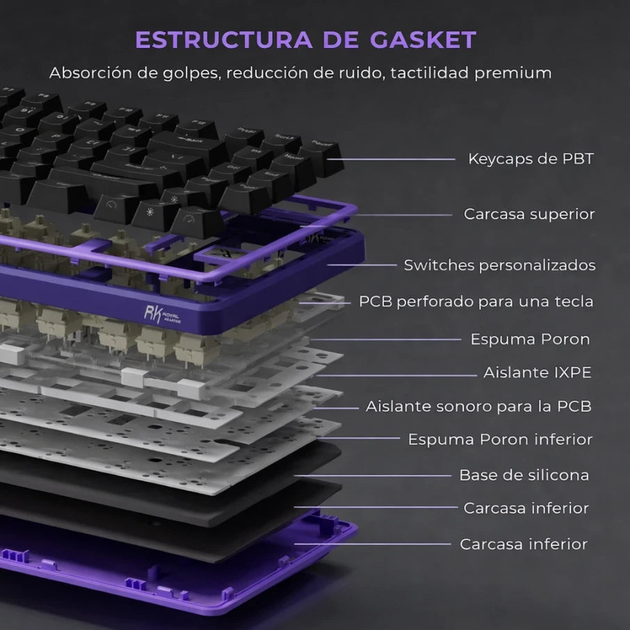 TECLADO ROYAL KUDGE RK X87 | ESPAÑOL | CABLEADO | MECANICO | SW-CREAMY| BLACKBERRY MOUSSE