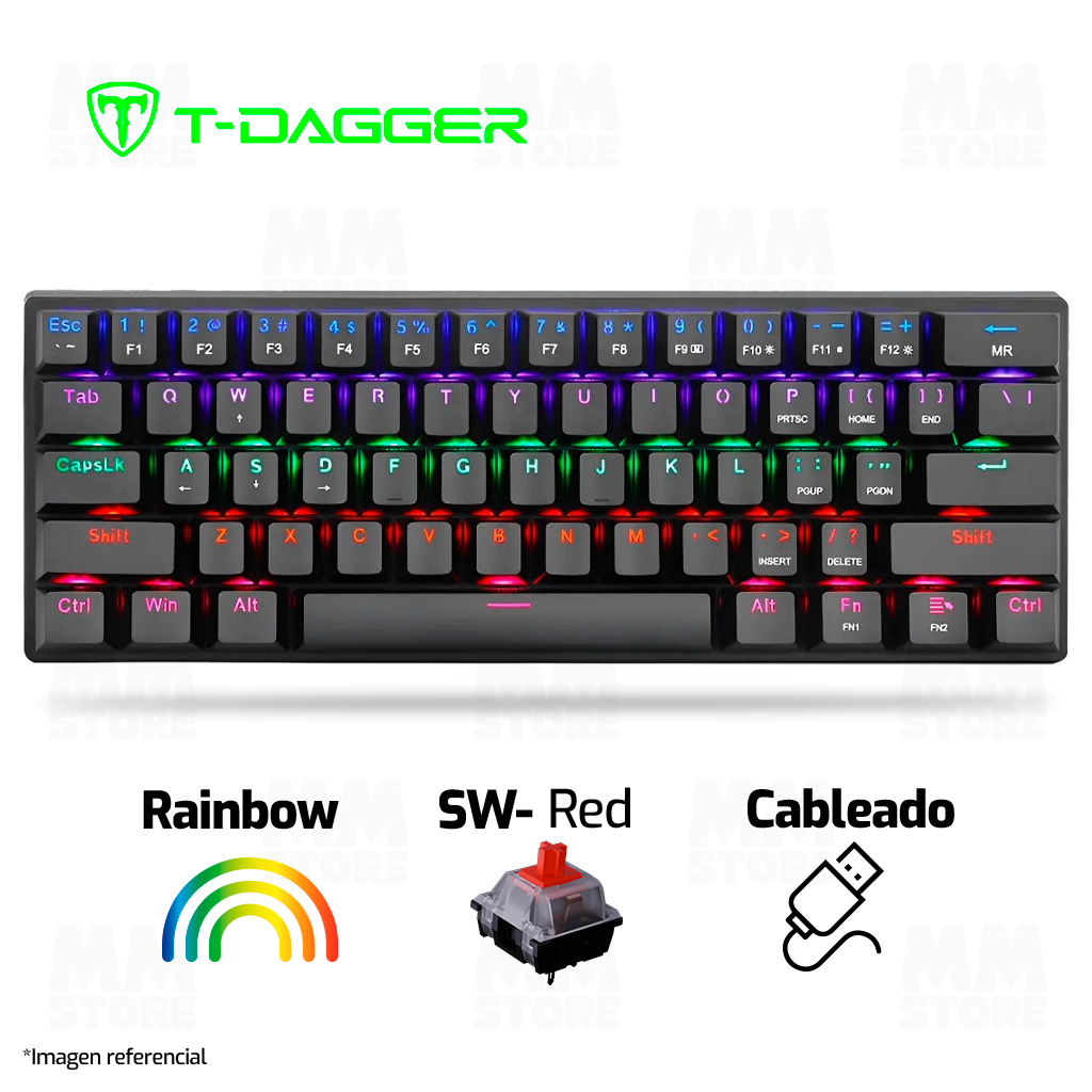 TECLADO T-DAGGER ARENA LITE | ESPAÑOL | MECANICO | SW-RED | RAINBOW | NEGRO